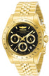The INVICTA 31001 model is part of the Speedway collection; this watch comes with a 39.5 mm Gold case, Black dial protected by Mineral crystal, powered by a Quartz movement completed by a Stainless Steel band. Water resistant up to 200 meters, protected by Invicta 2-year warranty